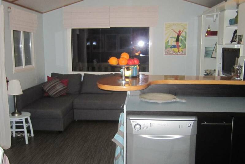 "Casa mobile Annebel" con 2 camere da letto, posto tranquillo, terrazza coperta in legno sulla panoramica (con vista mare sulla baia), dotata di TV, aria condizionata 2x, bagno con doccia, lavastoviglie, lavatrice, macchina da caffè, Nespresso, set da salotto, barbecue a gas e a circa 350 metri dalla spiaggia.